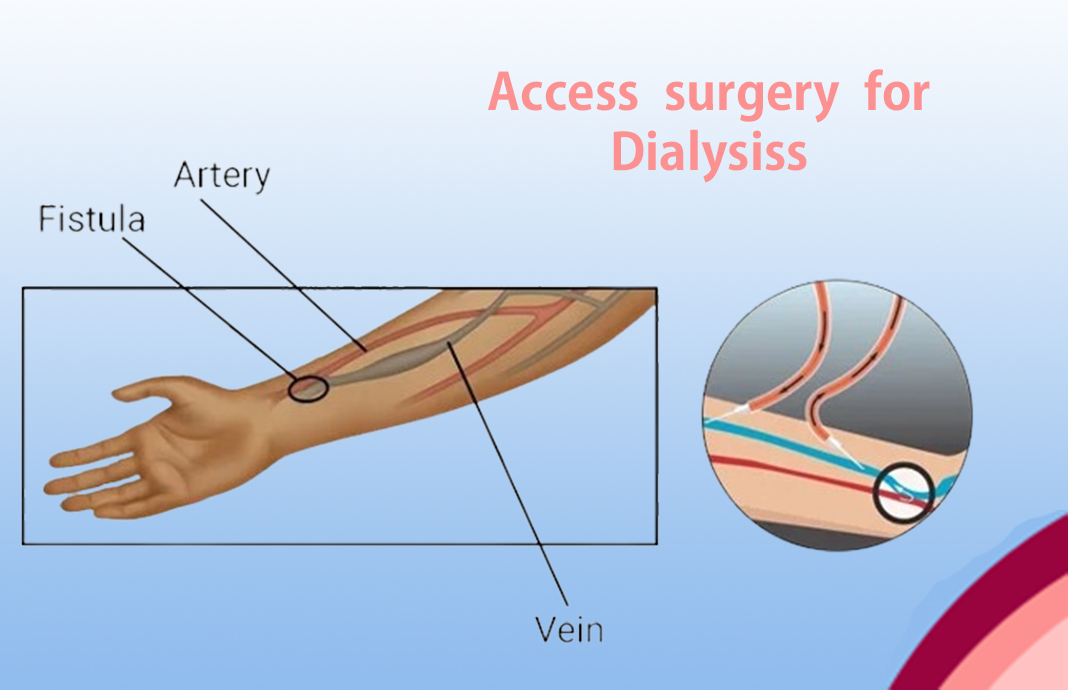 A surgeon creates an arteriovenous fistula by making a connection between an artery (which carries blood away from the heart) and a vein (which carries blood back to the heart). This artificial connection allows the vein to become larger and for the walls of the vein to thicken, a process termed maturation. A mature fistula makes it easier for the vein to be punctured repeatedly for dialysis. Maturation typically takes three to six weeks to occur, but in rare cases, can take longer. This makes advance planning for an arteriovenous fistula important. Ideally fistula should be created When a patient is diagnosed with kidney failure and is expected to need permanent dialysis in the near future. Arteriovenous fistulas are usually created between radial artery and the vein at the wrist. it can also be done at the fore arm as well as the elbow. An arteriovenous fistula is the preferred type of vascular access due to lower rate of infection and clot formation, resulting in greater longevity than other types of vascular access. This operation can be done under local anaesthesia and no admission is required. However, not everyone is a good candidate for an arteriovenous fistula, particularly older patients and patients with small veins or those who have blocked veins in the upper limb due to previous intravenous injections Basilic vein transposition: This operation is done when no suitable superficial vein is available for an AVF. Basilic vein is placed deep inside the arm. This can be mobilised and moved just under the skin and can then be used as an AVF. This operation needs anaesthesia and hospitalisation. Normally it takes 4-6 weeks for this to mature and be ready for dialysis.